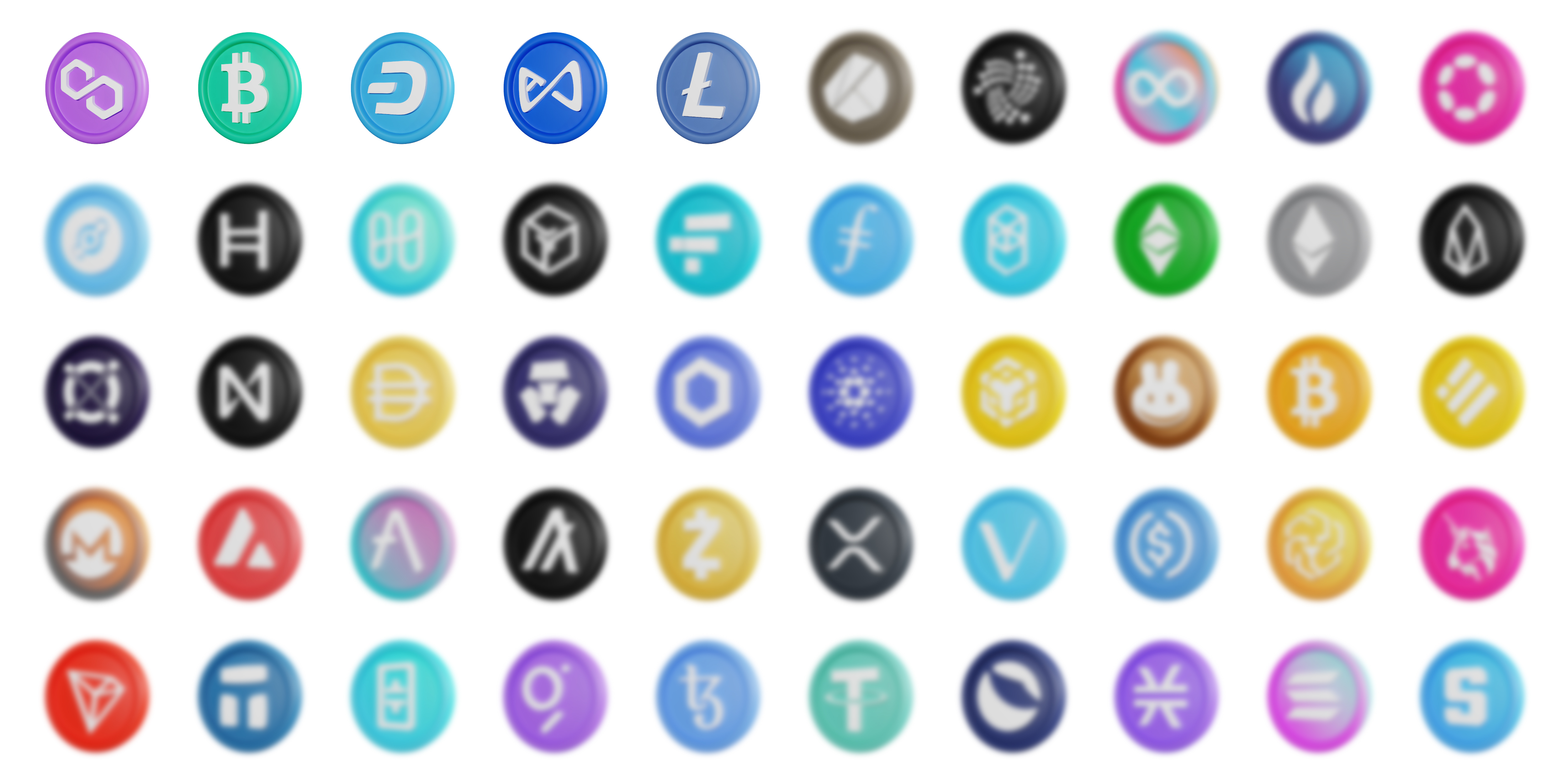 - Set of 50 cryptocurrency and blockchain related 3D Icons.